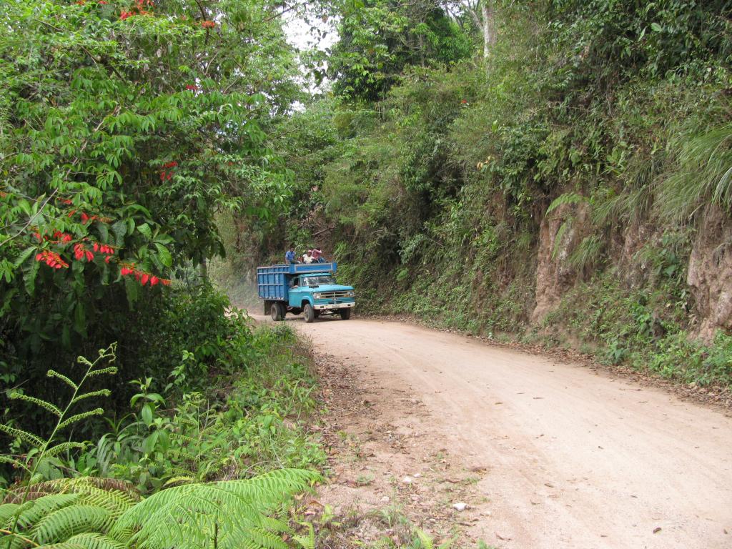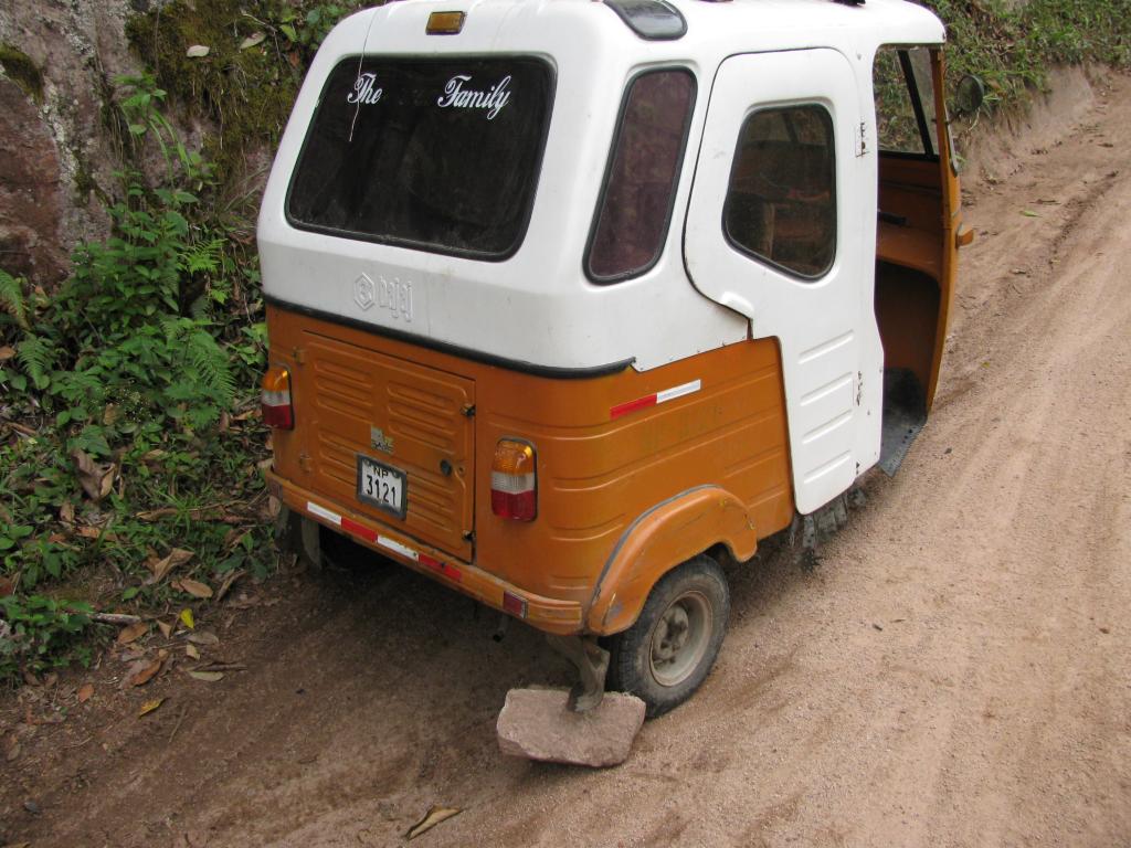 Z czasem droga zaczęła się piąć ostro w górę. Po drodze mijaliśmy plantacje ananasów, chaty zbudowane z gliny, ludzi podążających w obu kierunkach. Na wąskiej, górskiej drodze mijała nas ciężarówka z pasażerami. Gdy robiłem zdjęcie, to jedna z dziewczyn ręką zasłoniła twarz. Czyżby bała się, że ukradnę jej duszę? A może po prostu nie życzyła sobie zdjęć? W czasie naszej wspinaczki po górze silnik bajaja zaczął tracić na mocy. Nasz pojazd miał problemy z podjechaniem pod ostrzejszą górkę. Wyskoczyłem więc z niego i zacząłem pchać. Przed kolejną górką zablokowałem koła kamieniem, aby się nie stoczył w dół. I tak kolejne kilkaset metrów pchałem, biegłem, szedłem i jechałem. W końcu uznaliśmy, że uszkodzenie sprzęgła jest zbyt duże, aby kontynuować jazdę i zawróciliśmy do miasta. Na szczęście tym razem droga biegła w dół. Mając do dyspozycji tylko drugi i trzeci bieg oraz na wpół spalone sprzęgło dotarliśmy do miasta. Mimo niedzieli warsztat był otwarty. Jak tylko podjechaliśmy, wyskoczyło do nas właściciel z pracownikiem oraz jeden klient, aby obejrzeć co się stało. Jeszcze na ulicy zostało naprawione sprzęgło. Niestety musiało ono być wymienione na nowe, co miało potrwać do jutra. Kilka minut negocjacji i mechanik zgodził się, że zrobi to za godzinę. Korzystając z chwili przerwy poszliśmy do kafejki internetowej, gdzie mogłem uzupełnić teksty na blogu, oraz dorzucić kilka zdjęć.