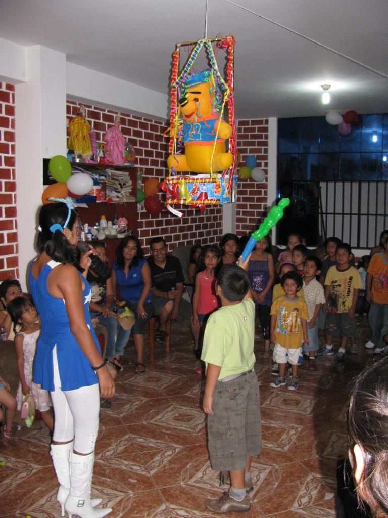 Gdy wróciliśmy do warsztatu, okazało się, że właściciel zrobił sobie sjestę i gdzieś poszedł. Na szczęście mototaksi bała naprawiona, więc mogliśmy spokojnie wrócić do domu. W domu natrafiliśmy na urodziny syna sąsiada. Dzieci wraz z rodzicami były zabawiane przez wynajętą w tym celu panią. Puszczała ona muzykę, śpiewała razem z gośćmi, prowadziła konkursy. Na końcu tradycyjnie dzieci rozbijały uderzeniem kija, zawieszony pod sufitem worek z cukierkami i konfetti – Pinatę. Około 18:30 wyruszyliśmy do Kościoła. Mszę celebrował 83-letni kapłan. W nabożeństwie pomagały mu kobiety – ministrantka, panie śpiewające psalmy, zbierające na tacę, czytające ewangelię.