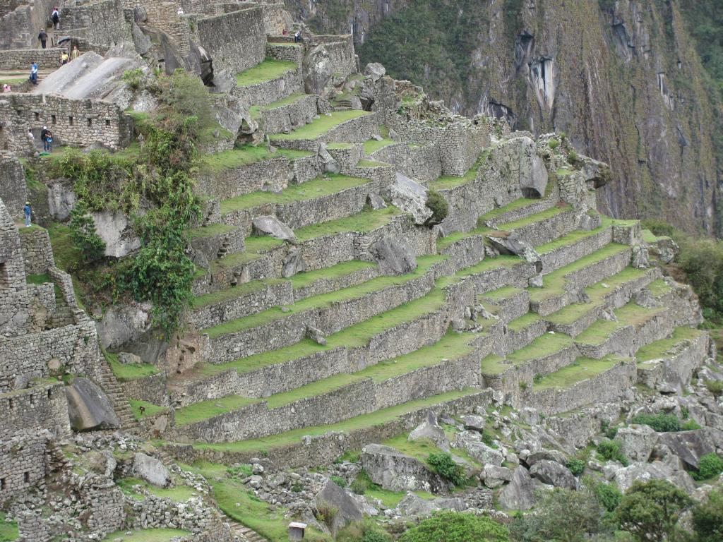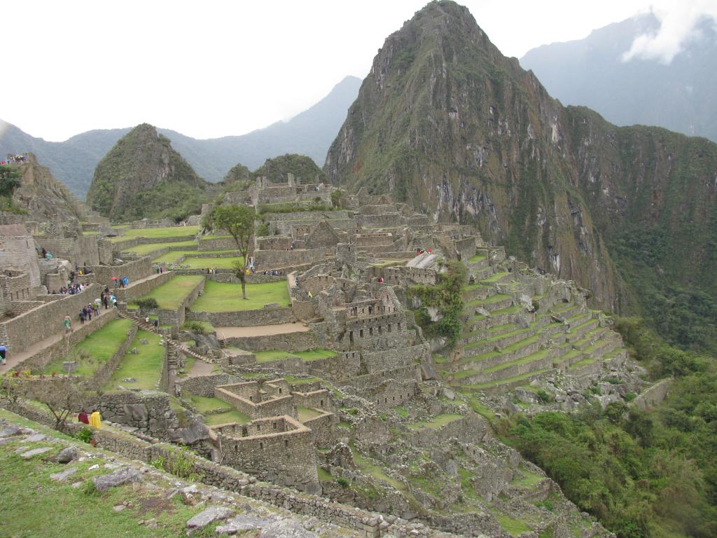 Po wyjściu z autobusu, zostaliśmy zaprowadzeni do restauracji – pizzerii, gdzie można było posilić się przed zwiedzaniem. Ceny były zabójcze, więc odpuściliśmy sobie tę przyjemność. W drodze do wejścia na teren zabytków natrafiliśmy na Azjatę. Poznał nas, ucieszył się, że nas widzi i przyłączył się do naszej międzynarodowej mini-grupy. Kwon (bo tak ma na imię) pochodzi z Korei Południowej i mieszka w Seulu. Został przydzielony nam sympatyczny anglojęzyczny przewodnik. Bardzo długo i dokładnie opowiadał o historii odkrycia tego miejsca, o prawdopodobnym przeznaczeniu poszczególnych budynków, o ludziach go zamieszkujących. Później mieliśmy czas wolny, który wykorzystaliśmy z Kwonem na zwiedzanie i rozmowę. Po opuszczeniu Machu Picchu naszą czwórką udaliśmy się do autobusu, który zawiózł nas na dworzec kolejowy. W oczekiwaniu na nasz pociąg chodziliśmy z Kwonem po straganach i oglądaliśmy pamiątki. Nie mógł zrozumieć, dlaczego tutaj wszystko jest droższe niż w Cusco. Poradziłem mu, żeby się targował. Spróbował. Długo nie mógł wyjść z podziwu, że jedna rzecz, która przed chwilą kosztowała 30 Soles, po krótkiej rozmowie była do kupienia za 15. Postanowił, że po powrocie do Korei zacznie uczyć się hiszpańskiego.