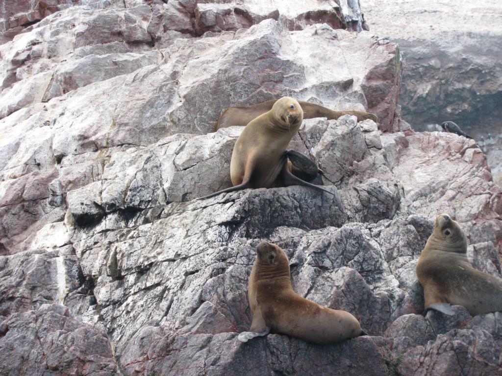 Na pierwszej wyspie widzimy tajemniczy symbol – kandelabr – wyryty w litej skale rysunek, przypominający świecznik. Później udajemy się na kolejne wyspy, gdzie możemy podziwiać zwierzęta. W czasie naszej jazdy przepływamy przez Prąd Humboldta, który niesie zimne wody. Temperatura wody w tym miejscu wynosi około 14st.C. Łódka zaczyna mocno podskakiwać na falach. Po opuszczeniu tego prądu znów płyniemy spokojnie. Zatrzymujemy się przy kolejnych wyspach, gdzie już na wyłączonym silniku opływamy je i podziwiamy pingwiny, lwy morskie, rozgwiazdy, kraby, pelikany i inne patki. Skały mają liczne pieczary oraz mosty, które zostały ukształtowane w sposób naturalny. Są tutaj również platformy i budynki, służące kiedyś do załadunku tego naturalnego nawozu.